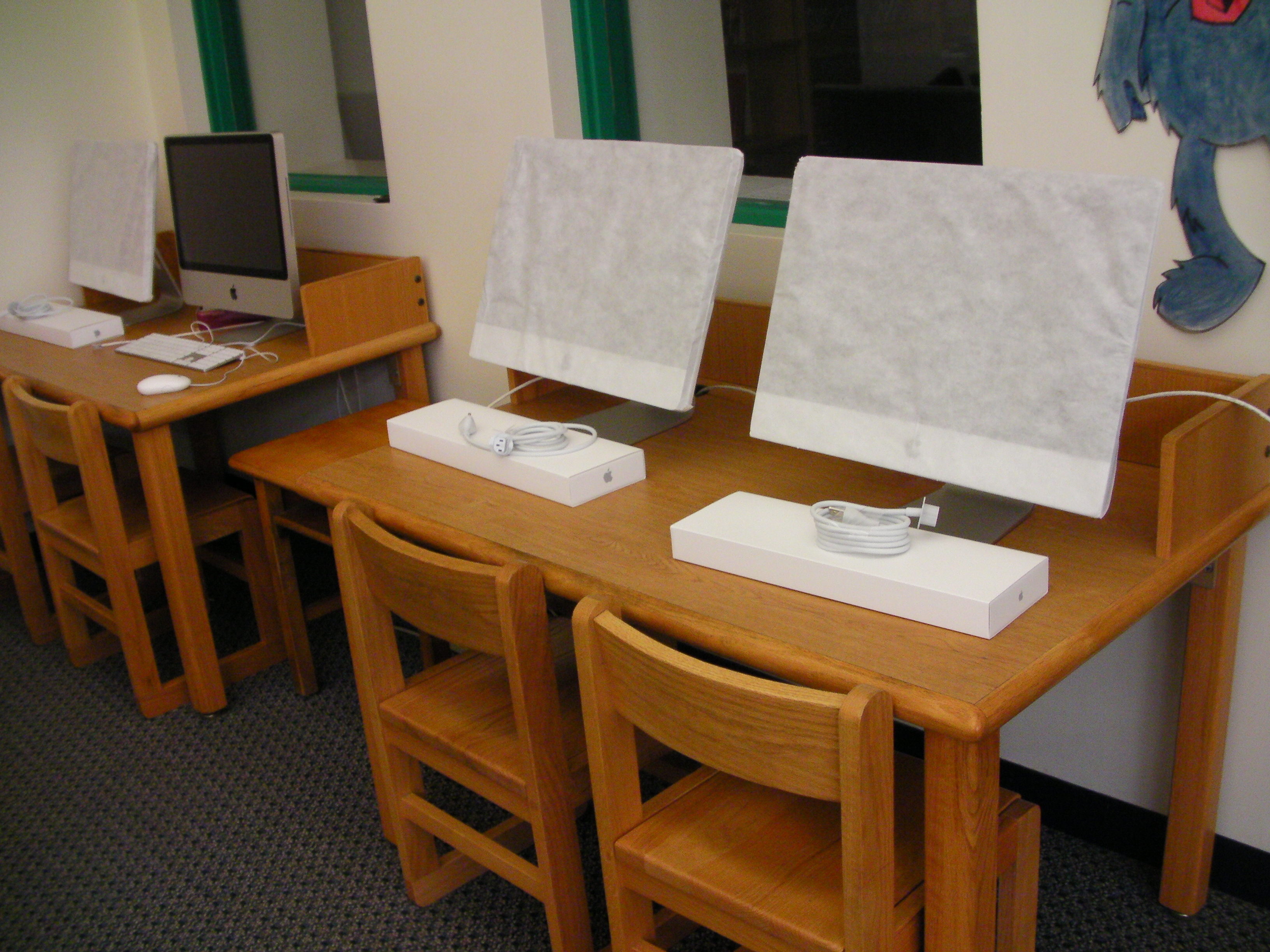 We are so excited to begin setting up the rest of our new iMacs! Thank you to our anonymous donor for contributing to our fundraising efforts to purchase these eight computers. Are you excited to see the new iMacs in the library? Will you miss the old bubble computers? Tell us about it here!