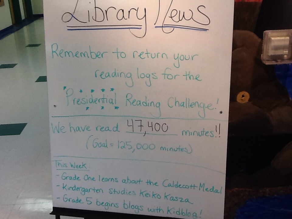I hope everyone is keeping track of their reading minutes for our reading challenge! This year we are trying to reach all of the presidents by reading for 125,000 minutes. For every 3,000 minutes we earn another president. As of today, we have read for 47,400 minutes, bringing us to Abraham Lincoln, our 16th president. You can help us by spending extra time reading between now and February 13 and adding your minutes to your weekly log. Thanks to all of the student announcers, too! They’ve shared a lot of interesting information about each of our presidents so far.