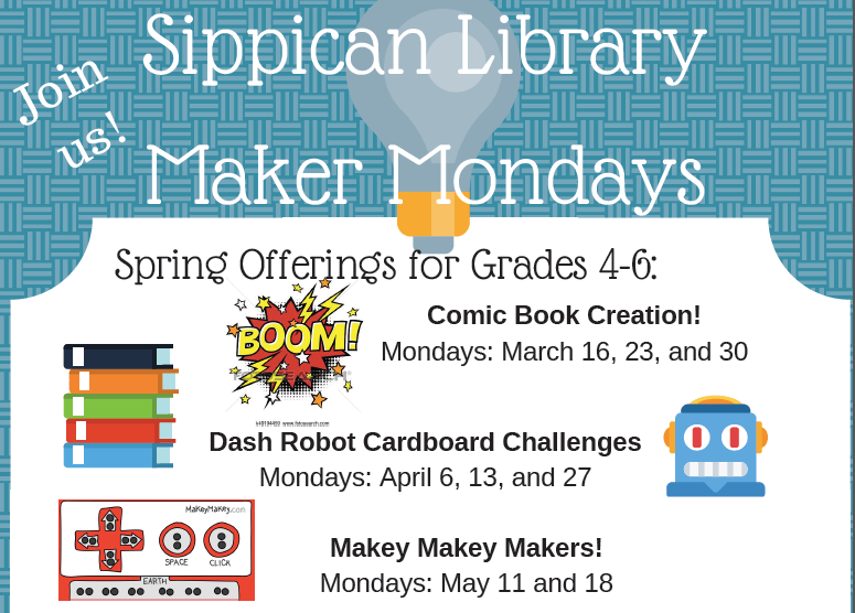 Calling all students in grades 4-6! We hope you’ll join us for Maker Mondays this spring. We will meet on Mondays beginning March 16 from 3-4 in the school library. This year we will be working on the following projects: